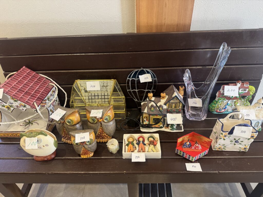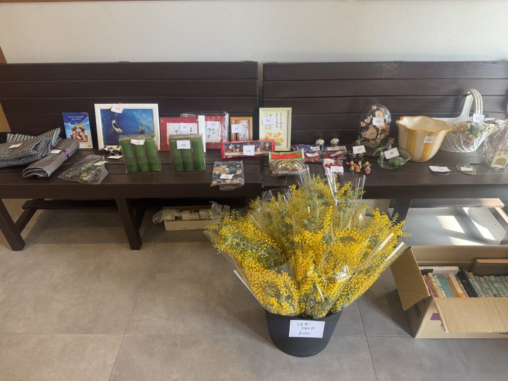 写真は開会前の様子。次々とお客様がお見えになって、交流している間に盛況ぶりを撮り損ねてしまいました。生花(ミモザ)はもちろん、並べられた品物は新たな持ち主の元に。来週のバザーが心配になるくらいです。でも大丈夫。まだ発掘されてないものもあるし、また新たな献品も集まってくることでしょう。